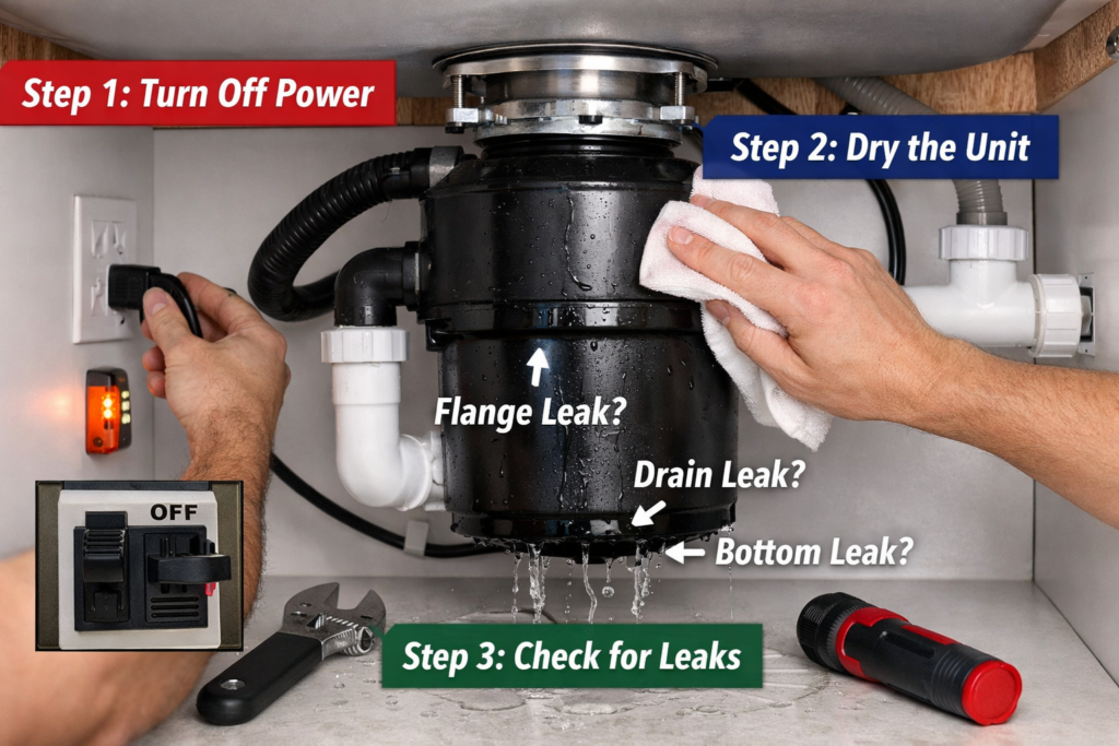 That’s why accurate diagnosis matters. You need to know whether your garbage disposal is leaking from the bottom due to a simple connection issue or a failed internal seal.