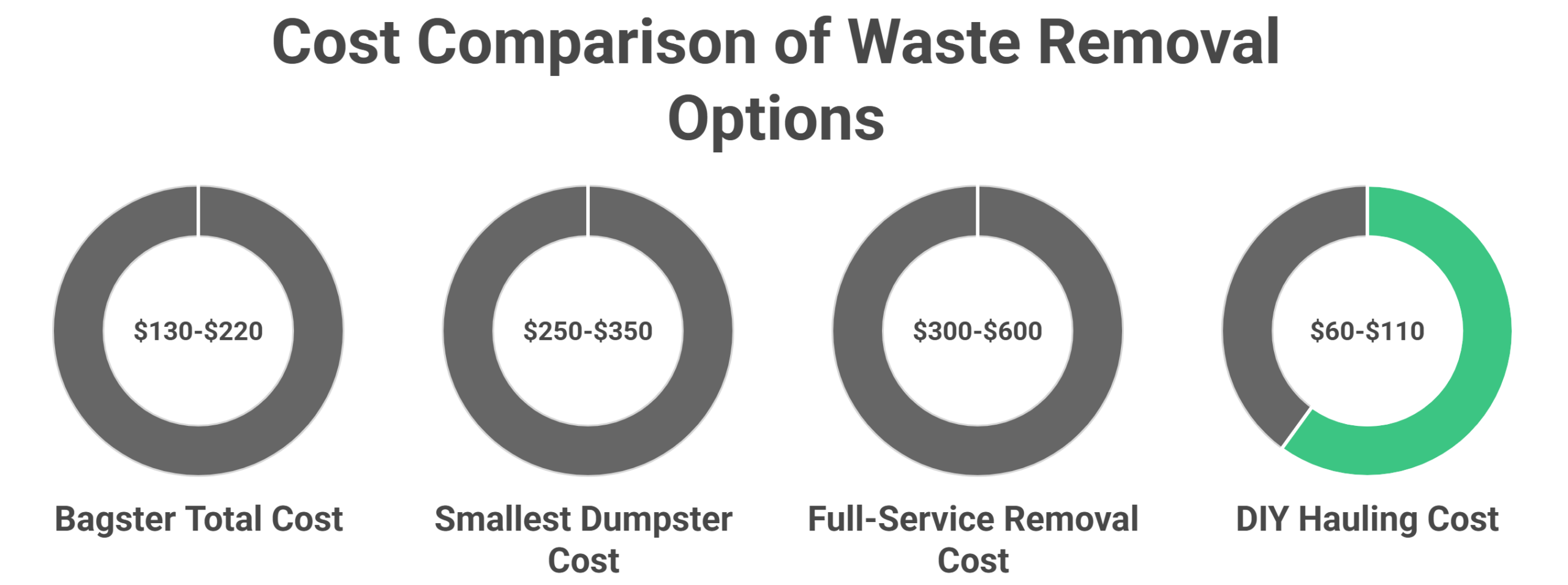 DIY hauling costs $60-$110 in hard dollars (truck rental plus dump fees), but requires 4-8 hours of heavy physical labor. If you value your time at $25 per hour, that’s really $160-$310 total cost.