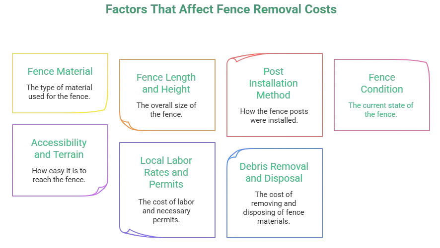 Fence material has the biggest impact on fence removal cost. Each type requires different tools and labor.